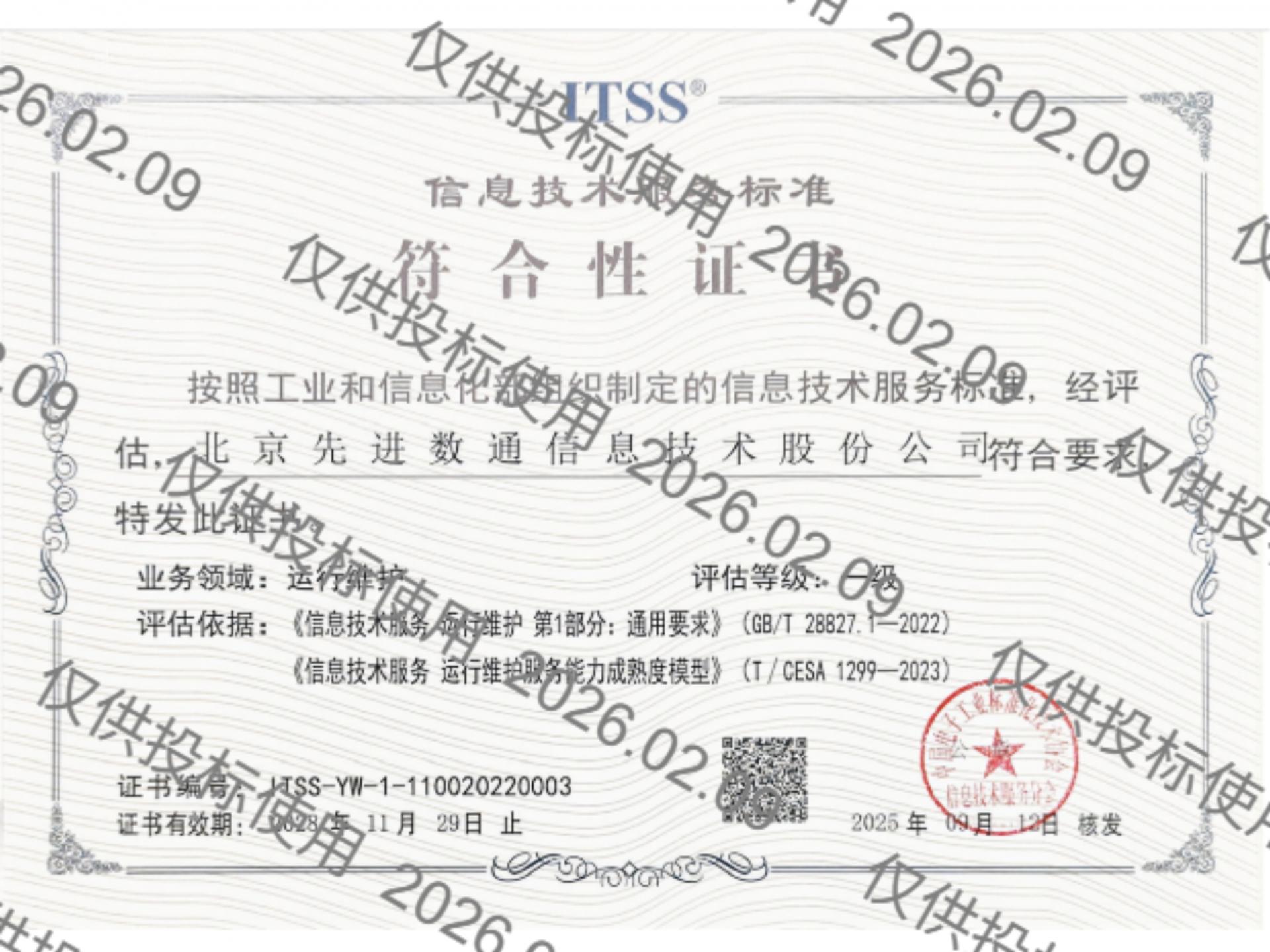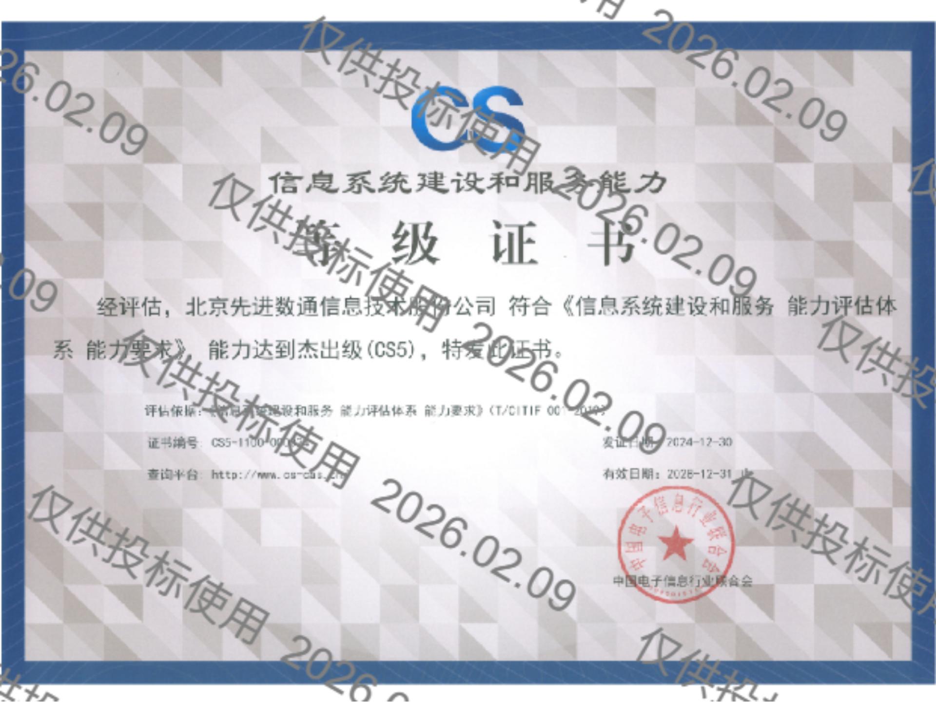 金年会jinnian先后取得CMMIL5、软件能力成熟度五级(SPCA 5)、信息系统建设和服务能力评估体系(CS)5级、ITSS成熟度一级、信息系统安全集成服务资质二级、信息系统安全运维服务资质二级、国产化信息系统集成和服务能力评估四级(LS4)、北京市企业技术中心等资质认证,并取得ISO9001、ISO20000、ISO27001、ISO14001、ISO45001、ISO22301、ISO37001、ISO28001、GBT29490等标准体系认证,具备行业领先的技术开发、工程实施及服务保障能力。
